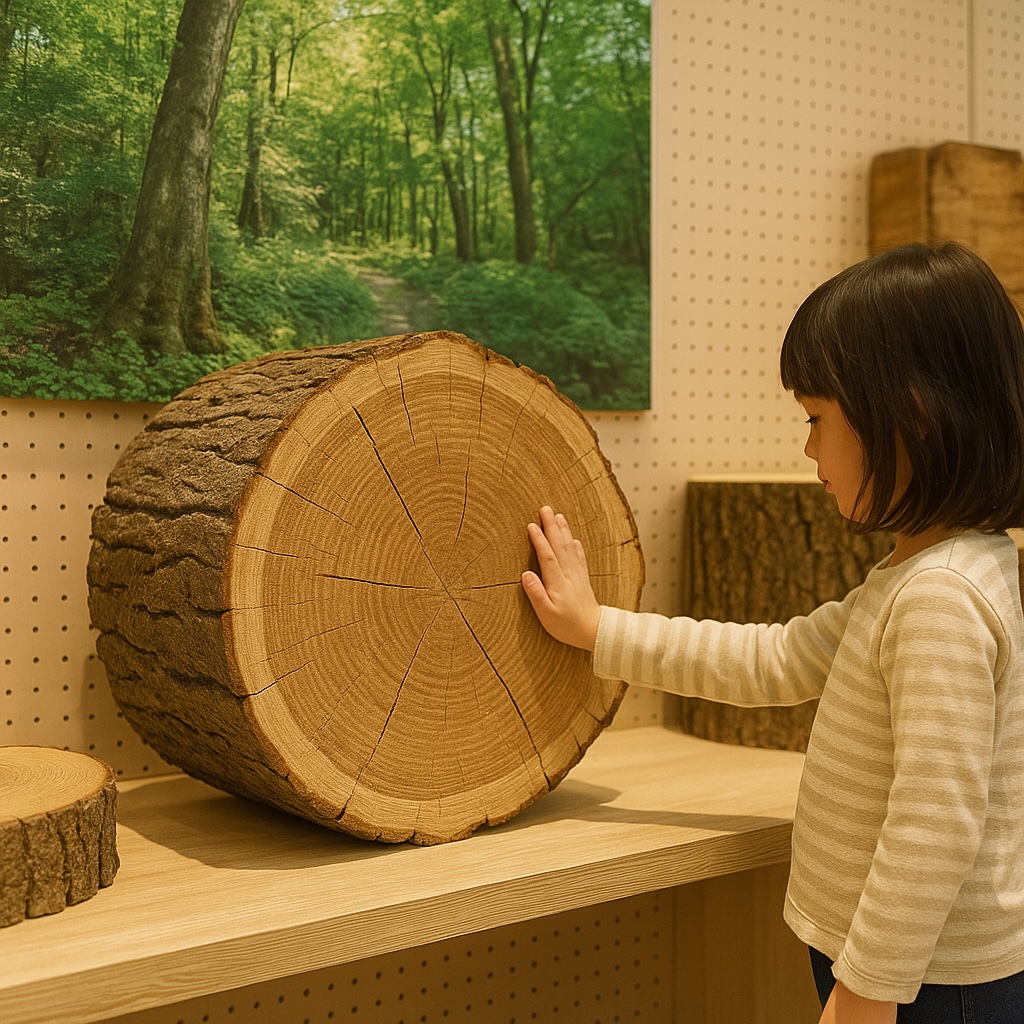 この展示は、森の役割から、林業の現場、木材の魅力、そして福岡の森を守る人の想いまでを体験型で学べる企画。