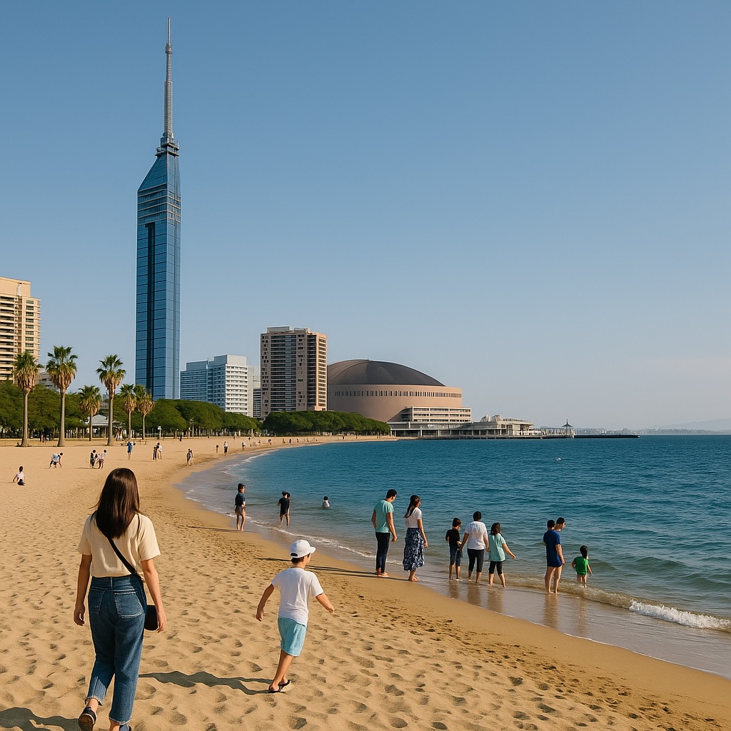 海なのに“都会的”、でも風と砂の感触はちゃんと“自然”——そんな独特の非日常を味わえるのが百道浜の魅力です。
